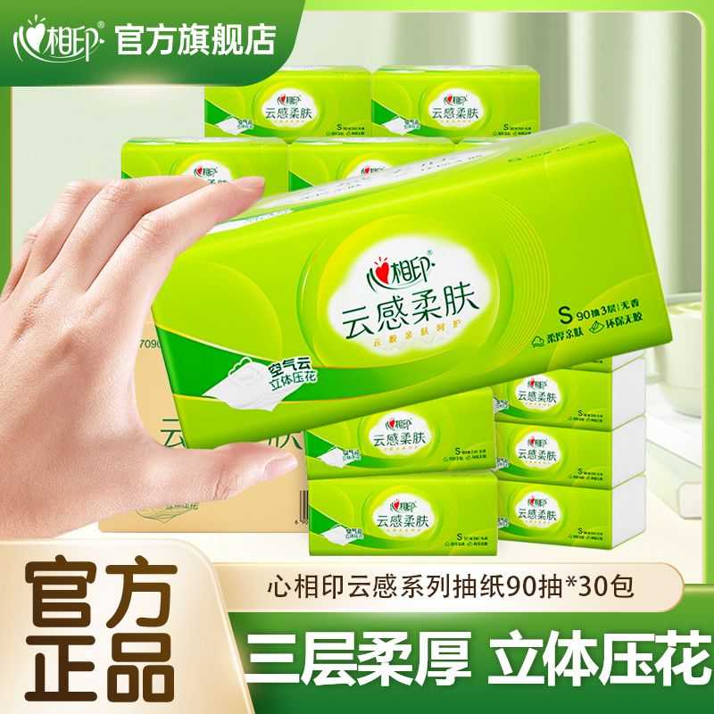 心相印抽纸巾云感90抽家用整箱3层餐巾纸面巾纸卫生纸巾实惠批发