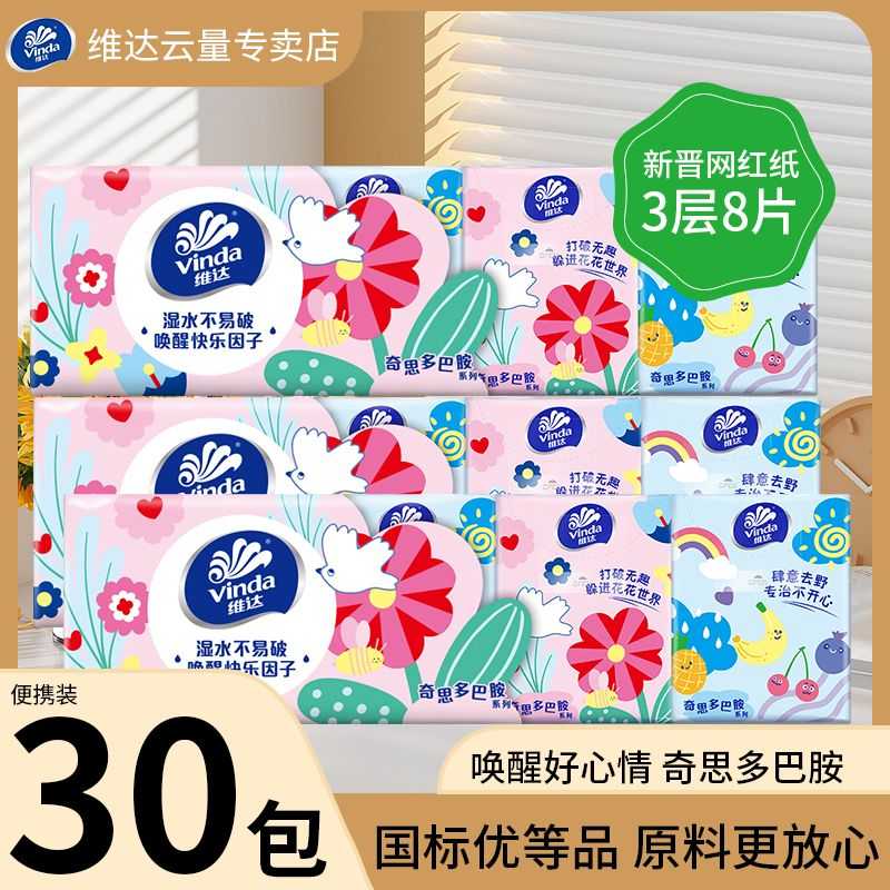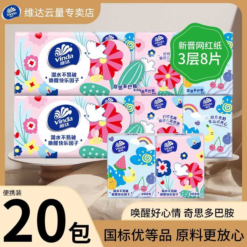 维达手帕纸多巴胺无香随身纸巾卫生纸便携卡通小包装面巾纸餐巾纸