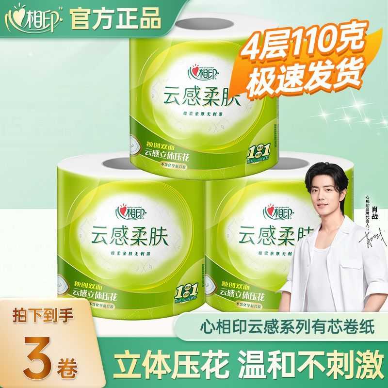 心相印卷筒纸4层110g加厚亲肤卷纸厕所纸卫生纸学生宿舍专用实惠