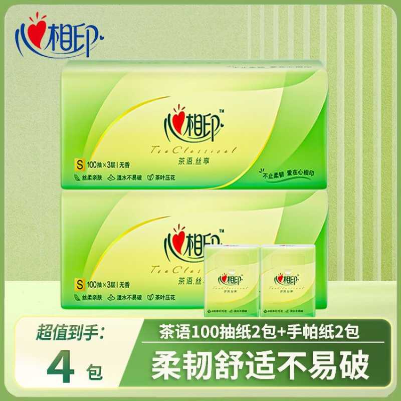 心相印纸巾茶语三层100抽餐巾纸日常家用卫生纸面巾纸亲肤细腻