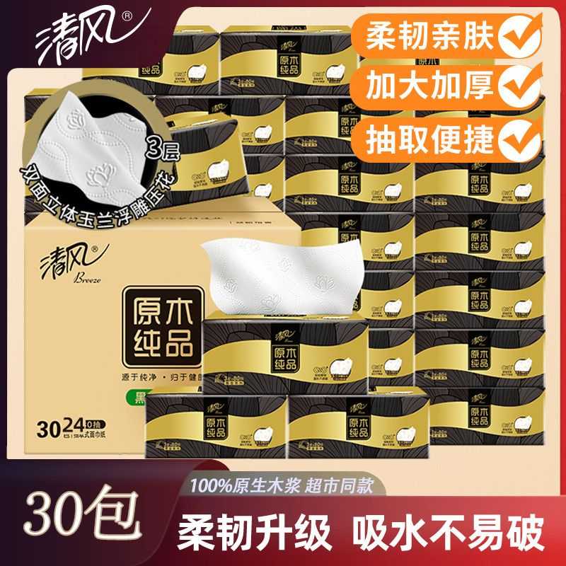 清风抽纸3层超质感110抽面巾纸餐巾纸家用实惠卫生纸批发纸巾