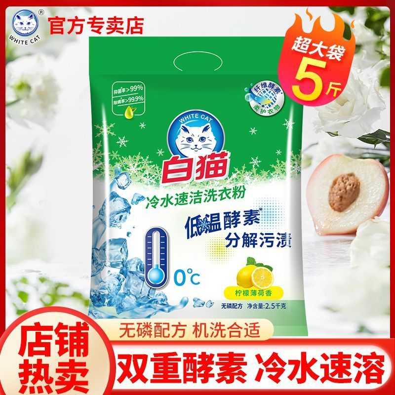 白猫冷水速溶洗衣粉5斤大袋手洗机洗无磷实惠装家用香味速洁批发