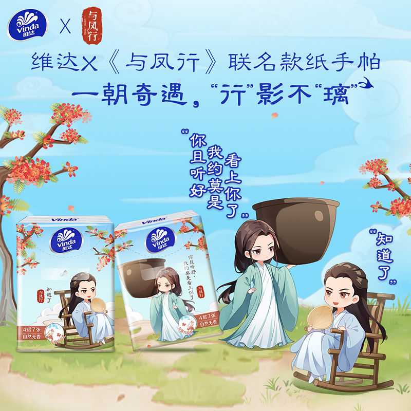 维达手帕纸超韧4层小包纸巾随身装便携式餐巾纸学生纸与凤行联名