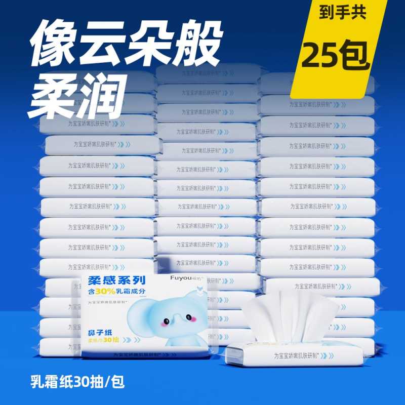 到手25包】福佑乳霜纸婴儿柔纸巾新生儿保湿纸云柔巾宝宝抽纸小包