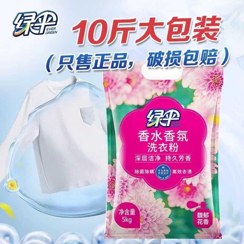 绿伞洗衣粉10斤大袋除螨持久清香深层洁净家庭实惠装花香强力去污