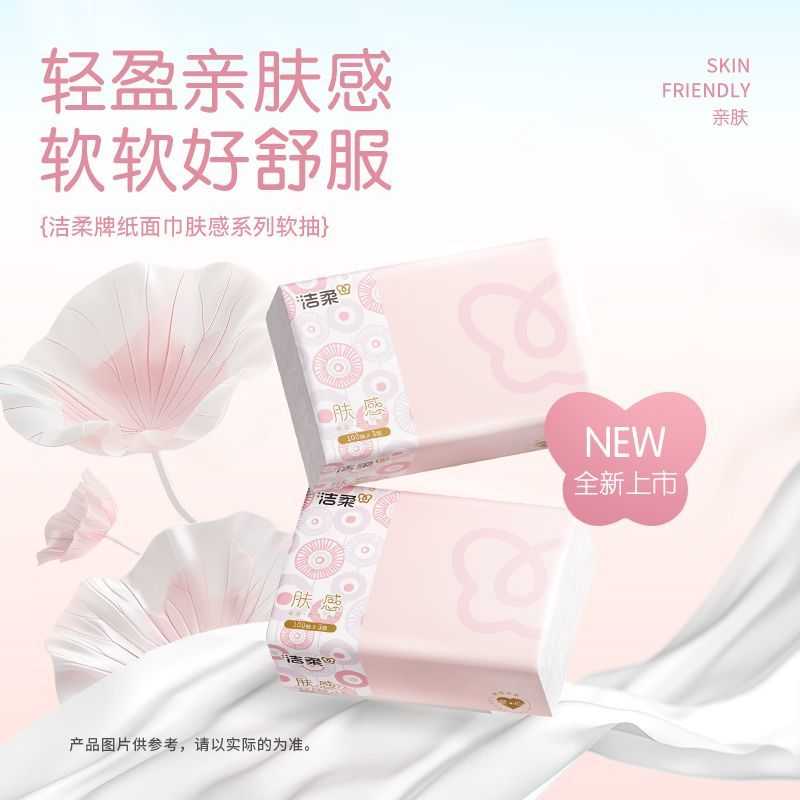 洁柔肤感抽纸实惠大包XS码100抽家庭装餐巾面巾纸抽取式卫生纸抽