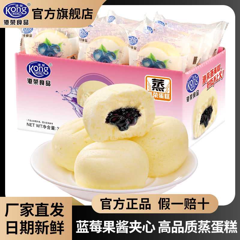 港荣蓝莓蒸蛋糕320G果酱夹心糕点早餐代餐软面包健康食品网红零食