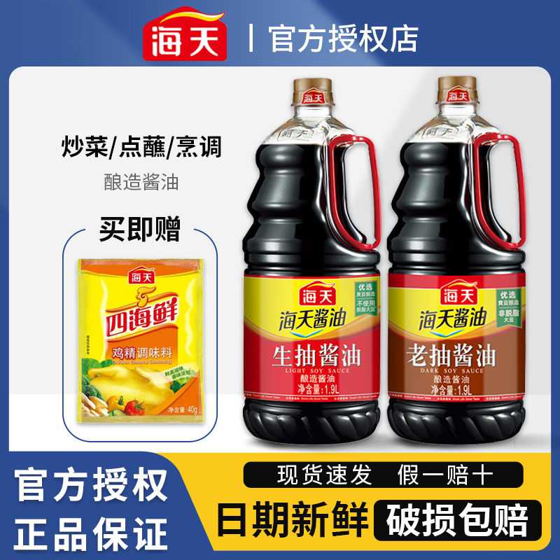 海天酱油生抽1.9L老抽1.9L黄豆酿造酱油炒菜凉拌点蘸厨房调味品