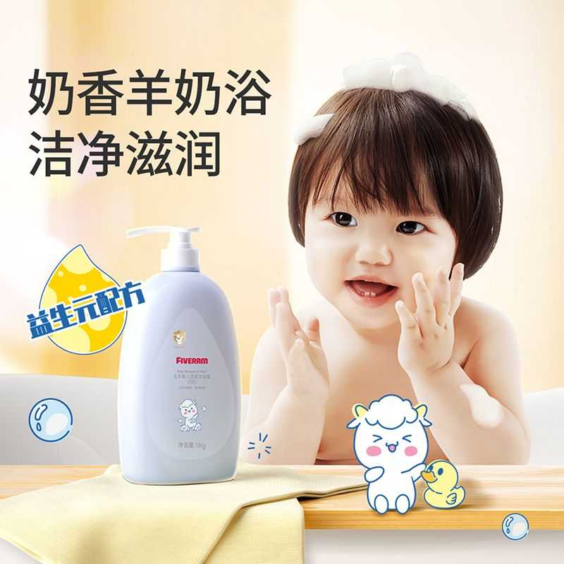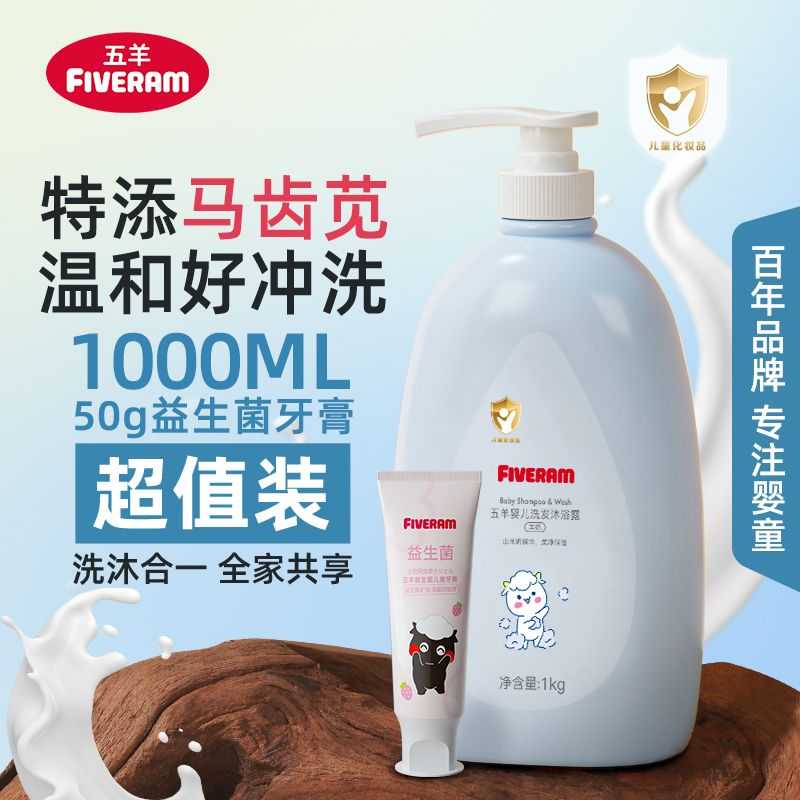 正品五羊婴儿羊奶洗发沐浴露1L二合一滋润沐浴乳超值组合家庭装