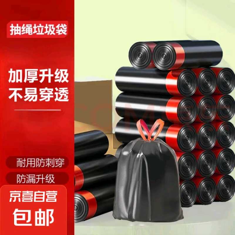 【京东物流】加厚加大点断易撕45*45CM 抽绳垃圾袋 抽绳垃圾袋【75只】黑色