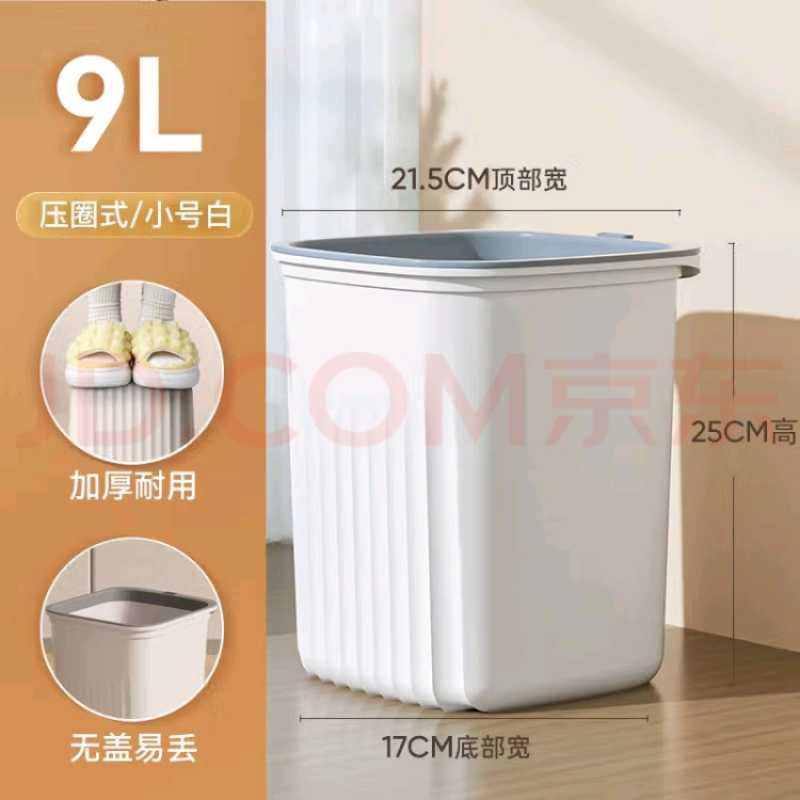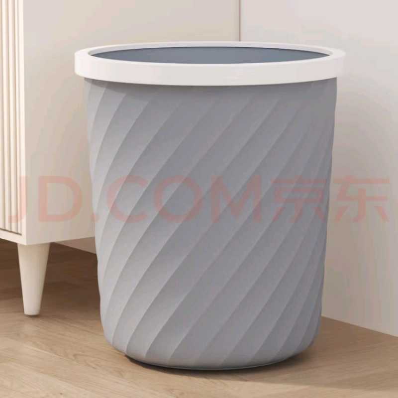 牧冬垃圾桶家用大号容量客厅厕所卫生间卧室厨房办公室带压圈桌面纸篓 【9L】灰白色压圈垃圾桶