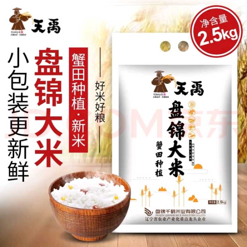 天禹 盘锦蟹田大米5KG 东北大米新米低氧塑封珍珠米粳米圆粒米 2.5KG 塑包易储存