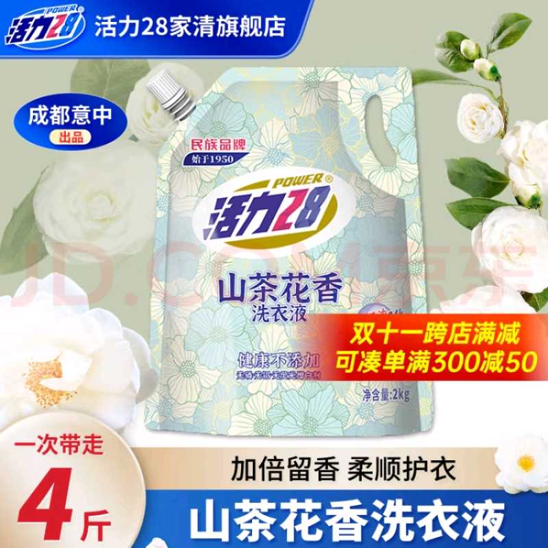 活力28山茶花洗衣液2kg留香持久香氛去污护色洗衣液 1袋装